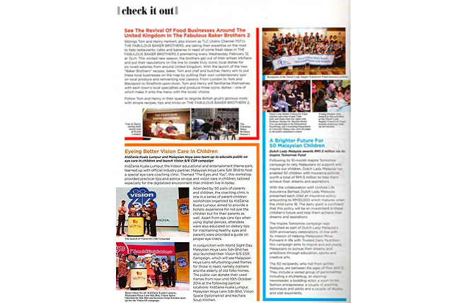 Featured in Parenthood, Dec 2013 issue. Vision Space Optometrist together with Hoya lens conducted a children eye-care for parents at KidZania Kuala Lumpur recently and…