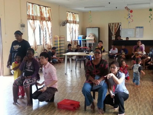 The Vision Space Optometrist team conducting complimentary eye check for the orang asli community at a remote area in Semenyih, Selangor.