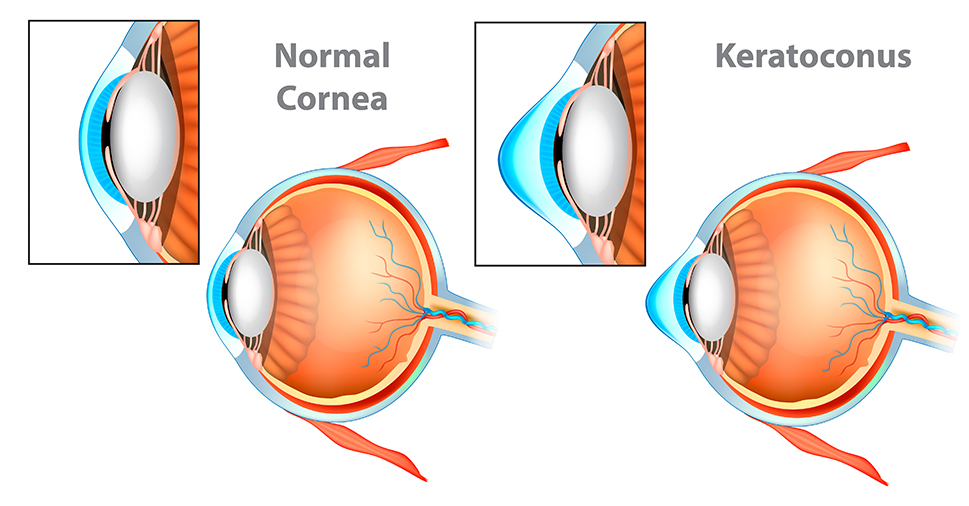 - 圆锥角膜是一种慢性进展性角膜疾病,会导致原本规则的角膜逐渐变薄,并向外突出,形成不规则的圆锥装,导致视力扭曲与模糊。